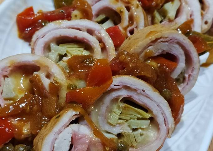 - Al posto del tacchino vanno bene i petti di pollo, le fettine di vitello o quello che avete in frigo, l'importante è che si arrotoli bene..
