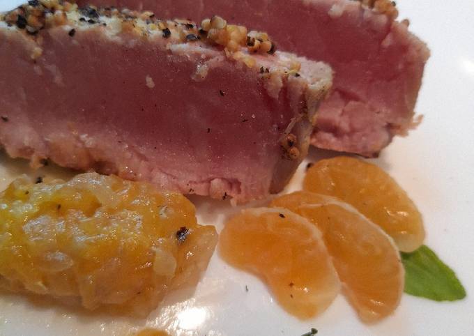 Recipe of Perfect Tonno mostarda e senape con composta alla clementina e cipolla