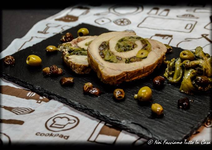 Recipe of Quick Arrosto di lonza farcito con scarola, olive, capperi e acciughe