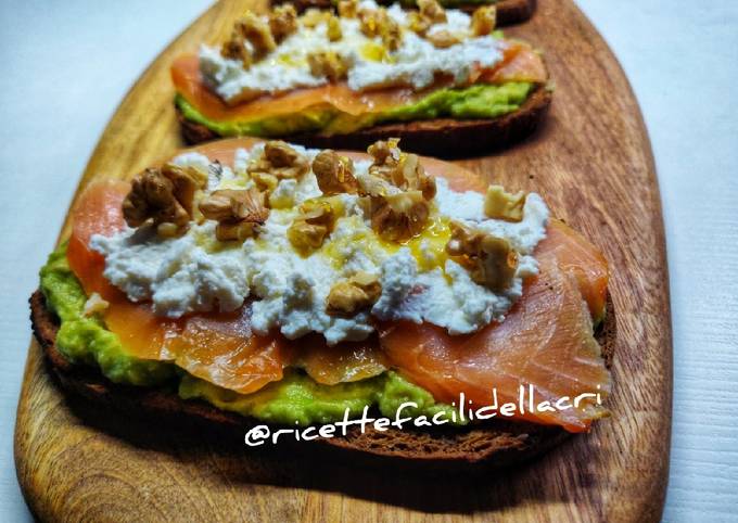Steps to Make Homemade Avocado toast con salmone ricotta e noci