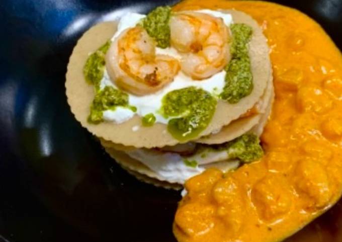 Instructions to make Lasagnetta di Grano Saraceno con Burrata e Gamberi: